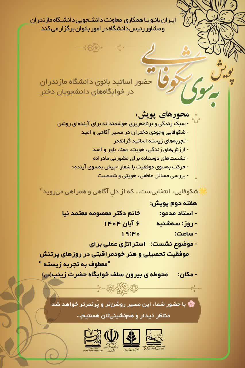 ایران بانو با همکاری معاونت دانشجویی دانشگاه مازندران و مشاور رئیس دانشگاه در امور بانوان برگزار می کند