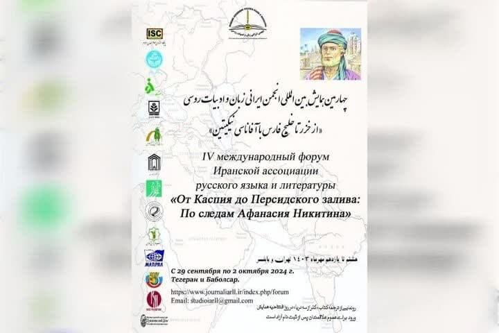 یادآور میشود: چهارمین همایش بینالمللی"از خزر تا خلیج فارس با آفاناسی نیکیتین" توسط انجمن ایرانی زبان و ادبیات روسی و با همکاری انجمن ایرانشناسی ایران و دانشگاههای الزهرا، تربیت مدرس و دانشگاه مازندران از ۸ تا ۱۱ مهر در شهرهای تهران و بابلسر برگزار میشود.