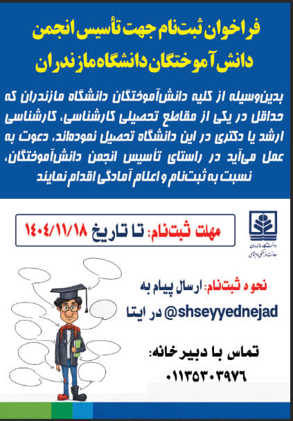 فراخوان ثبتنام جهت تاسیس انجمن دانشآموختگان دانشگاه مازندران